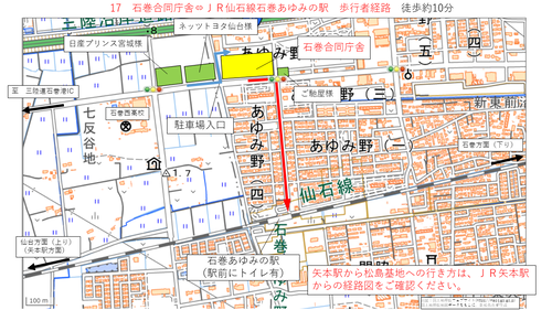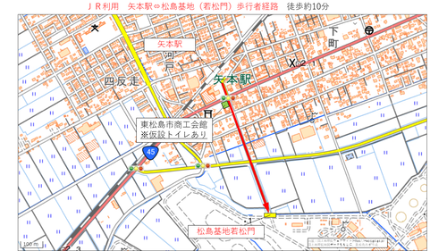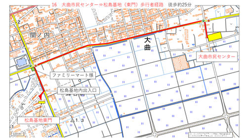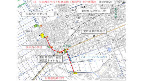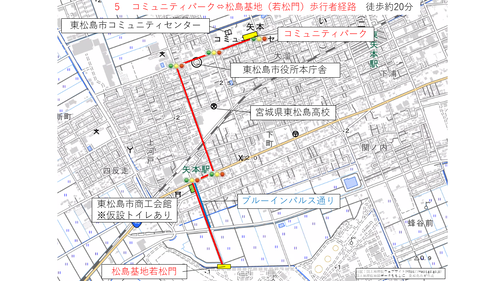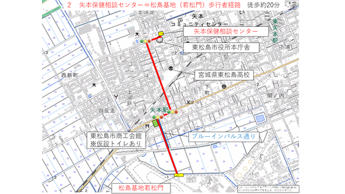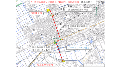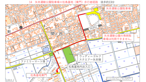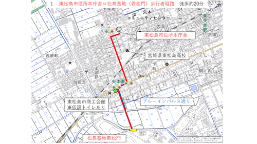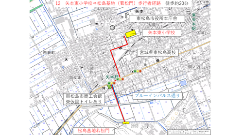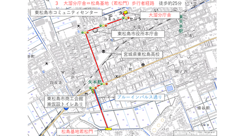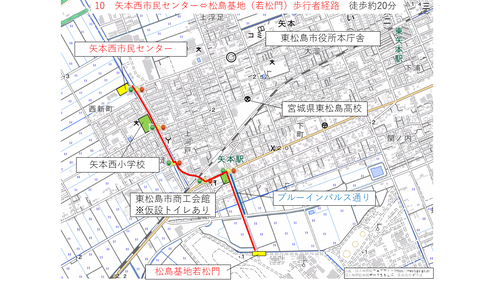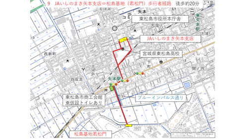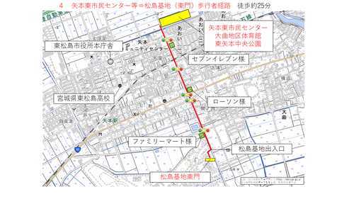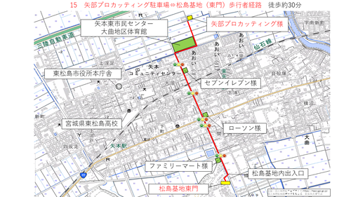 矢本駅及び臨時駐車場から松島基地までの経路について