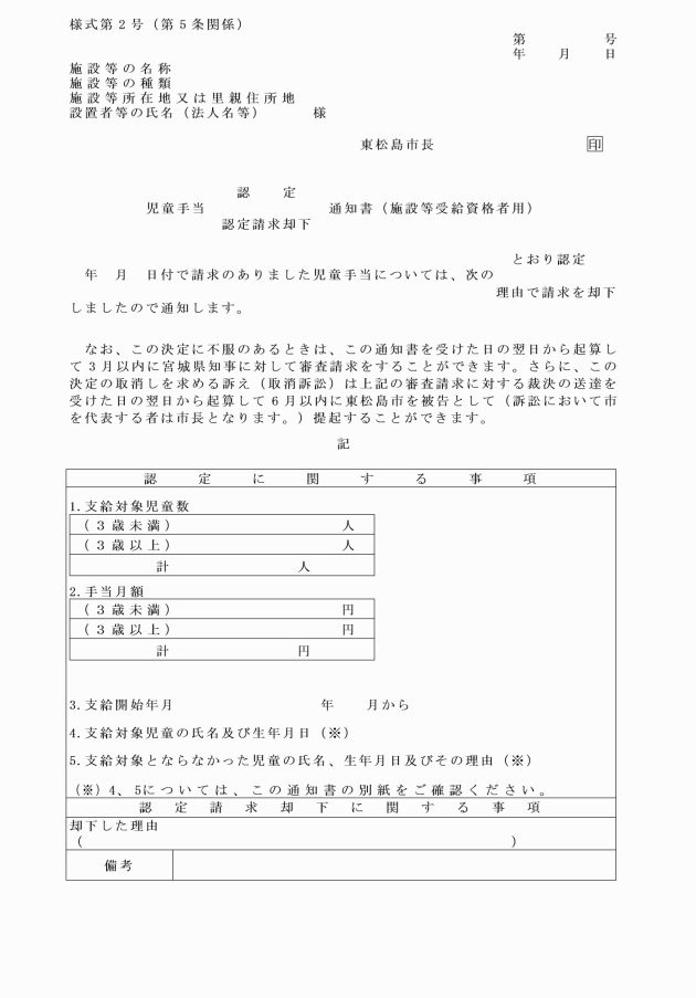 ○東松島市児童手当事務取扱規則