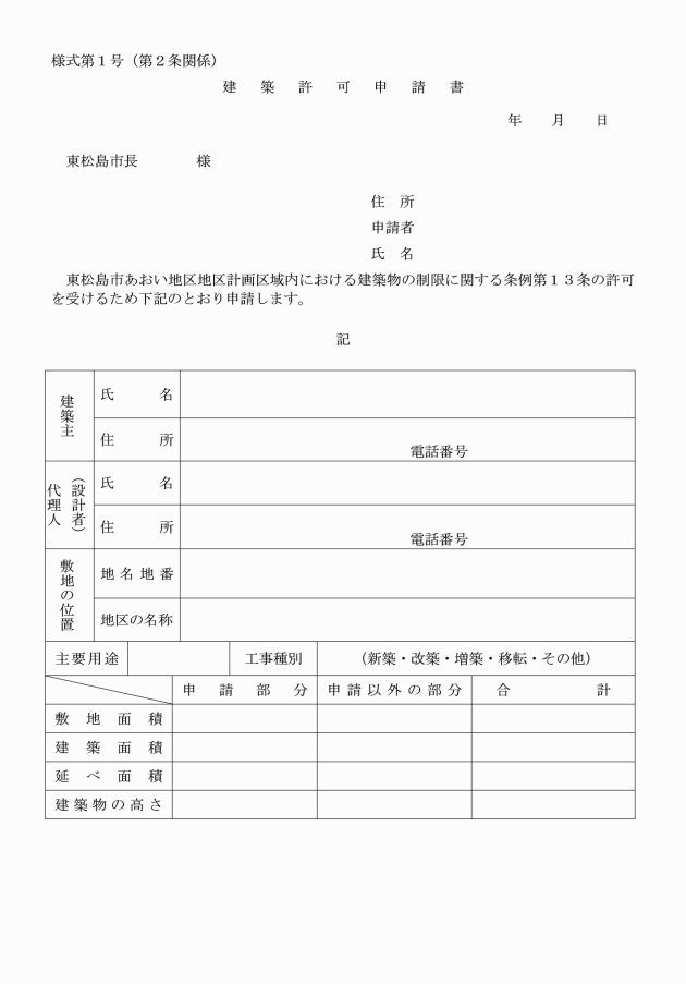 ○東松島市あおい地区地区計画区域内における建築物の制限に関する条例施行規則